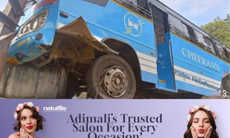 ഓട്ടത്തിനിടയിൽ സ്വകാര്യ ബസിൻ്റെ ടയർപൊട്ടി അപകടം: നിയന്ത്രണം നഷ്ടപ്പെട്ട ബസ് പാതയോരത്തെ കലുങ്കിലിടിച്ച് നിന്നതിനാൽ വലിയ അപകടം ഒഴിവായി.