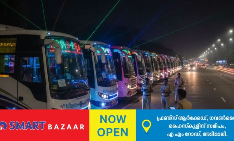 കണ്ണഞ്ചിപ്പിക്കുന്ന ലേസർ ലൈറ്റുകളും ഹൈ-ഫ്രീക്ക്വൻസി ഓഡിയോ സിസ്റ്റവും : എറണാകുളത്ത് 15 ഓളം ടൂറിസ്റ്റ് ബസുകൾ മോട്ടോർ വാഹന വകുപ്പിന്റെ പിടിയിലായി.
