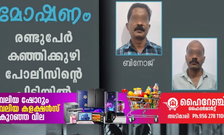 ഇടുക്കി : കീരിത്തോട് ചാഞ്ഞാനിയിൽ വീട്ടിൽ ബിനോജ്, പാറതോട്ടായിൽ വീട്ടിൽ മനേഷ് എന്നിവരാണ് അറസ്റ്റിലായത്. 01.01.26 തീയതി വെളുപ്പിന് 1 മണിക്കാണ് പ്രതികൾ ഏഴാം കൂപ്പിലുള്ള അയ്യുണ്ണിക്കൽ തോമസ് എന്നയാളുടെ വീടിൻ്റെ ടെറസിൽ സ്റ്റോറിൽ സൂക്ഷിച്ചിരുന്ന 40 കിലോ ഗ്രാം കുരുമുളകും, 40 kg കാപ്പിക്കുരുവും, 15 kg റബ്ബർ ഷീറ്റും മോഷണം ചെയ്തത്. കഞ്ഞിക്കുഴി പോലീസ് ഇൻസ്പെക്ടർ സുരേഷ് വി എ യുടെ നിർദ്ദേശപ്രകാരം സബ് ഇൻസ്പെക്ടർമാരായ താജുദ്ദീൻ, റെജി, സീനിയർ സിവിൽ പോലീസ് ഓഫീസർമാരായ പ്രിൻസ്, ഷാനവാസ്‌, ഷെരീഫ്, സിവിൽ പോലീസ് ഓഫീസർമാരായ സനുമോൻ, മനു, ബാവാസ്, രാജ്‌മോഹൻ എന്നിവരുടെ അടങ്ങുന്ന പോലീസ് സംഘമാണ് പ്രതികളെ പിടികൂടിയത്.