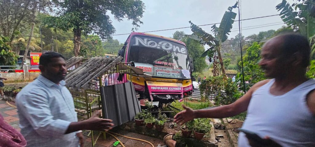 അടിമാലി:ഓട്ടത്തിനിടയിൽ ടയർ പൊട്ടിയതിനെ തുടർന്ന് സ്വകാര്യ ബസ് അപകടത്തിൽ പെട്ടു. അടിമാലി പത്താം മൈലിന് സമീപമാണ് അപകടമുണ്ടായത്. ടയർ പൊട്ടിയതിനെത്തുടർന്ന് നിയന്ത്രണം വിട്ട വാഹനം വീടിൻ്റെ മുറ്റത്തേക്ക് ഇടിച്ചു കയറി. ആർക്കും പരിക്കുകൾ ഇല്ല.