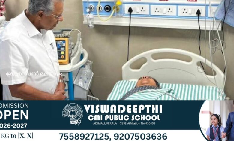 കെഎസ്യു കരിങ്കൊടി പ്രതിഷേധത്തിനിടെ പരുക്കേറ്റ ആരോഗ്യ മന്ത്രി വീണാ ജോർജ് ഐസിയുവിൽ. കണ്ണൂർ ജില്ലാ ആശുപത്രിയിലാണ് മന്ത്രി പ്രവേശിപ്പിച്ചിച്ചിരിക്കുന്നത്. മുഖ്യമന്ത്രി പിണറായി വിജയൻ മന്ത്രിയെ സന്ദർശിച്ചു. മന്ത്രിയുടെ കഴുത്തിനും കൈയ്ക്കുമാണ് പരുക്കേറ്റത്. കണ്ണൂർ റെയിൽവേ സ്റ്റേഷനിൽ നടന്ന കെഎസ്യു കരിങ്കൊടി പ്രതിഷേധത്തിനിടെയാണ് മന്ത്രിക്ക് പരുക്കേറ്റത്.