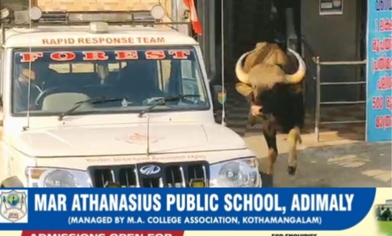 മറയൂര് ടൗണില് കാട്ടുപോത്തിന്റെ പരാക്രമം;ടൗണില് പ്രവര്ത്തിക്കുന്ന പഞ്ചായത്തോഫീസിനുള്ളില് കാട്ടുപോത്ത് കയറി