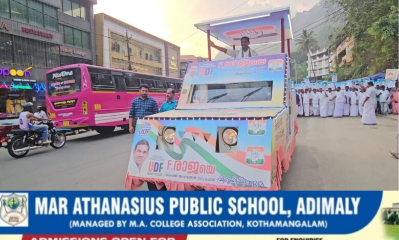 യുഡിഎഫ് സ്ഥാനാര്ത്ഥി എഫ് രാജയുടെ പ്രചാരണാര്ത്ഥം അടിമാലിയില് റോഡ് ഷോ സംഘടിപ്പിച്ചു