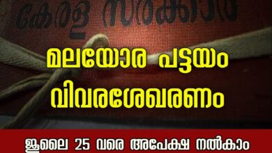 മലയോര പട്ടയം വിവരശേഖരണം : ജൂലൈ 25 വരെ അപേക്ഷ നൽകാം