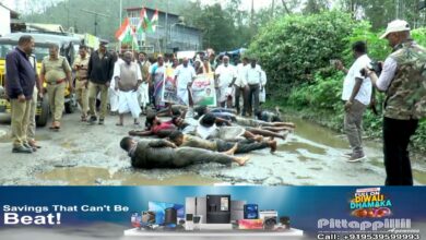 കോണ്ഗ്രസ് പ്രവര്ത്തകര് മൂന്നാറില് റോഡില് ശയനപ്രദക്ഷിണം നടത്തി പ്രതിഷേധിച്ചു