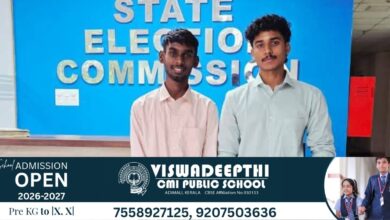 വരുന്ന തദ്ദേശ തിരഞ്ഞെടുപ്പിൽ കന്നിവോട്ടു ചെയ്യാനാകുമെന്ന സന്തോഷത്തിനൊപ്പം തിരഞ്ഞെടുപ്പു പ്രക്രിയയിൽ തങ്ങൾക്കും മികച്ച സംഭാവന നല്കാനായതിന്റെ ആത്മവിശ്വാസത്തിലുമാണ് ആഷിനും ജെസ്വിനും. ചെന്നൈ എസ്ആർഎം ഇൻസ്റ്റിറ്റ്യൂട്ട് ഓഫ് സയൻസ്…